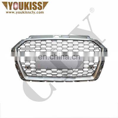 Product DescriptionSpecificationSubjectGenuine Car Accessories Body Parts Silver Black Front Car Grills For Audi A3 Change to RS3 Front ABS Car Grille 2016-2019Product nameFront Car GrilleMOQ1 set Stockin stockDelivery timeAfter you finish the payment, we can deliver for you at any timeDetails ImagesPacking & DeliveryAs for the delivery, we provide DHL, FEDEX, TNT, UPS, EMS... also could by Air, by seaIt's up to you, if you are not in a hurry, we suggest you choose sea.Company Profile If you have any questions, please feel free to contact us, we will uphold customer-oriented philosophy to provide you with the most professional, most comprehensive and highest quality service。FAQ1. how can we guarantee quality?Always a pre-production sample before mass production;Always final Inspection before shipment;2. why should you buy from us not from other suppliers? a.We have the first class equipment b. We will make the product to satisfy the customer Hold the flag of continuous improvementc.The strength support for realizing the higher ideal, from this moment we shall be of one mind and seek more higher better quality and more excellent credit and to realize the perfection in the unceasing creation. d.We provide car body kits, front grille, diffuser ,rear view mirror shell, spoiler, exhaust pipe, wheel hub and carbon fiber products and carbon fiber interior trim. e.We provide you 24 hours customer servicef.After sending, we will track the products for you. When you got the goods, test them,install, and give me a feedback.If you have any questions about the products, contact with us, we will offer the solve way for you.3. what services can we provide? Accepted Delivery Terms: FOB, CFR, CIF, EXW, FAS, CIP, FCA, Express Delivery; Accepted Payment Currency: USD, EUR, JPY, CAD, AUD, HKD, GBP, CNY, CHF; Accepted Payment Type: T/T,L/C,Credit Card,Western Union,Cash; Language Spoken:English,Chinese4: What about the delivery time?1-7 days ( most of products are in stock)5: Do you have any certificate?Yes, like Alibaba certification.