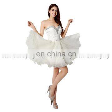 Hotsale Latest Short Puffy Sweetheart Rhinestone Party Dress Champagne Applique Organza Homecoming Dresses SD219