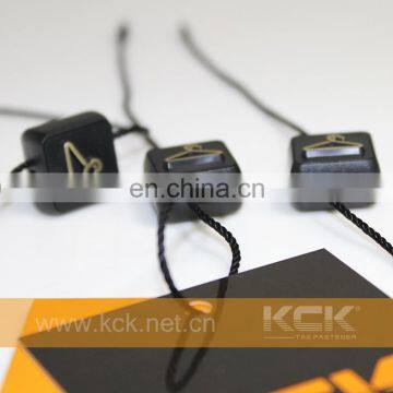 Quality Plastic hang tag cord KCK hangtag seal cord for garment and bag.