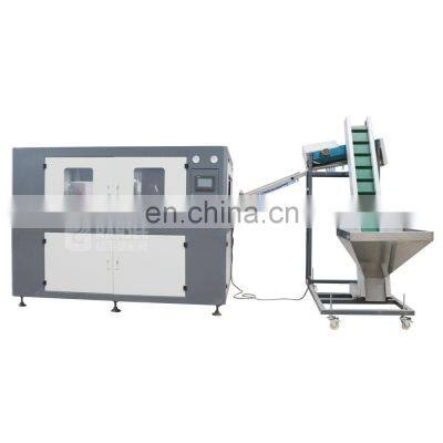 Automatic water bottle blow making machine blowing molding equipment for cheap price Product DescriptionSpecifications:GD-A6 automatic water bottle blowing machineCE approvalSpeed: 4500pcs/h for 500ml pet bottleVolume:100ml-2000mL Brief introduction of water bottle blow molding machine:1.GD-A6 is the fastest liner blow molding machine in mainland of China by now. Its baking tunnel is separated from the blow station so that time for mold opening is shortened with a result of speedy blowing and high output, damage to machine is lessened so as to keep reliable performance and prolong service life, as well as machine runs more smoothly and steadily.2.GD-A6 automatic stretch blow molding machine is equipped with patented preform loading system, which consists of two manipulators: rectilineal manipulator and overturning manipulator. The rectilineal manipulator moves preform with neck up to the preform holder, after heating, the overturning manipulator grips heated preform and overturn 180 put preform to blow station with neck down. After stretching and blowing, the bottle is taken off by overturning manipulator. The specially designed preform loading & bottle discharging system avoid possible damage to preform & bottle during transportation.3.GD-A6 is controlled by PLC. The whole process from preform feeding to bottle discharging is completed automatically with advantages of labor saving and no pollution.4.GD-A6 consists of three main parts: preform loading system, Heater channel & blow station. Machine show Our engineer make 2D drawing for free Touch screen PET Prefrom from preform loader into blowing machine 6 cavity mould Heating lamp in the heating oven Details show Main technical parameter:ModelItemGD-A2GD-A4GD-A6ProductivityDepend on bottle design1800-2700pcs/h3200-4000pcs/h4000-5500pcs/hBottle specificationVolume0.1-2.0L0.1-2.0L0.1-2.0LBody diameter≤100mm≤100mm≤100mmHeight≤300mm≤300mm≤300mmNeck diameter28mm-38mm28mm-38mm28mm-38mmMoldCavity246Mold thickness240mm240mm240mmMold volume260*240*370mm510*240*360mm640*240*360mmMain machine powerRated power25kw49kw73kwUsage power6.5kw13kw25kwAir systemHP air compressor1.4m3/min 3.0MPa2.0m3/min 3.0MPa6.0m3/min 3.0MPaLP air compressor1.0m3/min 1.0MPa1.6m3/min 1.0MPa2.0m3/min 1.0MPaAir tank0.6m3 3.0MPa0.6m3 3.0MPa1.0m3 3.0MPaAir dryer1.0m3/min 3.0MPa2.0m3/min 3.0MPa6.0m3/min 3.0MPaCooling water systemWater chiller3HP3HP3HPMain blowing machineSize(L*W*H)1900*1280*1930mm1900*1860*1930mm4100*2400*1930mmWeight2000kg3600kg4200kgPreform unscramblerSize(L*W*H)2000*950*2480mm2000*950*2480mm2000*950*2480mmWeight250kg250kg250kg Component listCompany Information Our teamOur exhibitionProject casesFAQQ1: How to find suitable plastic bottle blow moulding machine or complete water production line?A1: Looking for beverage filling machine in www.grandeemachine.en.china.cn Q2: What's the capacity of plastic bottle moulding machine?A2: We have full automatic and semi automatic unit with 800BPH to 13000BPH for 500ml plastic bottle Q3: How to choose the capacity of blowing machine for water production line?A3: If you want 2000-3000BPH for 500ml water production line, you can choose semiautomatic blowing machine with 1500BPH, the cost is about 8000-10000USD, if 4000-5000BPH for 500ml, you can choose full automatic 4 or 6 cavity normal speed or high speed servo driven blowing machine, the cost is about 40000-60000USD, if you want more details, you can send me inquiry, we can give you more professional technical solutions. Q4: Are you a trading company or a manufactory?A4: We are the manufacture of water/beverage filling machine and water treatment system over 10 years.We just not only sell drinking water machines and other related equipment , Quality is our culture. We have rich experienced engineers with technicians working team , providing good and after-sales service term , professional salesman terms . Q5: Do you have technical support after we purchased your machines?A5: We will arrange our professional technical to go aboard to your factory, they will help you and teach you how to install and maintenance the machines which you purchased. Or help you to fix machine when it has problems. Q6: If you buy our machines, can you offer us wear-out spare pats?A6: We provide our high quality machine 2 years guarantee , and we will also offer you 2 years wear-out spare parts for free. Once your machines broken or doesn't work within 2 years and you can't solve it, firstly, we will try to help you to find problems from your words description by phone or other communication tolls. Secondly, if the phone solutions still not work, our engineers will go to your factory to solve it. Meanwhile, they will teach you the related experiences for fixing.
