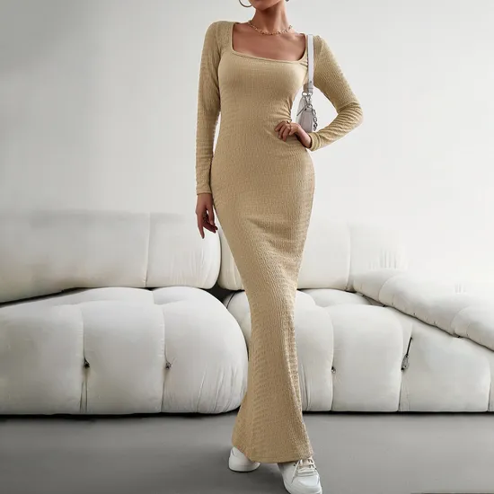 Women's Slim Knit Dress With Square Neck And Long Sleeves Yarn Dyed Casual DressesProduct DescriptionTo dear friends,