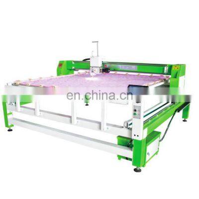 Hongxin computer controling industrial single needle quilting machine Industrial machine quilting brief introduction:1. Our this industrial machine quilting can automatic sewing various materials and designs. 2. Mainly used for cotton, chemical fiber, wool, camel hair, silk quilt, bedspread, sleeping bags, mattresses, textile accessories production. Have more than 220 kinds of existing pattern, special designs can be customized. 3. Our this industrial machine quilting is controlled by the computersystem, It can perfectly handle all sorts of complicated design on the whole coordinate system, in its production speed, mechanical properties,such as noise pollution index, are all ordinary quilting machine can't match.Machine specification: ModelHX22*25HX24*26HX26*28HX28*30Max.quilting size2.2*2.5m2.4*2.6m2.6*2.8m2.8*3.0mMax.Needledrop size2.0*2.3m2.2*2.4m2.4*2.6m2.6*2.8mPower1.5kw, 220v, 50hzGuilting thickness1200g/m2Sewing Speed300-2500RPM, Stitch length 2-10mm(Adjust)NeedleDP5 18~22#Machine size3*3*1.4m3.2*3.2*1.4m3.4*3.4*1.4m3.6*3.6*1.4mWeight720kg880kg1000kg1200kg Industrial machine quilting advantages: 1. Quilting quilt thickness can be adjusted 2. Flower store 3. The information display function4. Adopt synchronous belt transmission 5. Hook functions 6. Automatic thread breakage detect 7. The safety system test function 8. Swing the needles are strengthening function. 9. Power off memory function 10. Design features: 11. Fault error function and so on. Machine photoes: