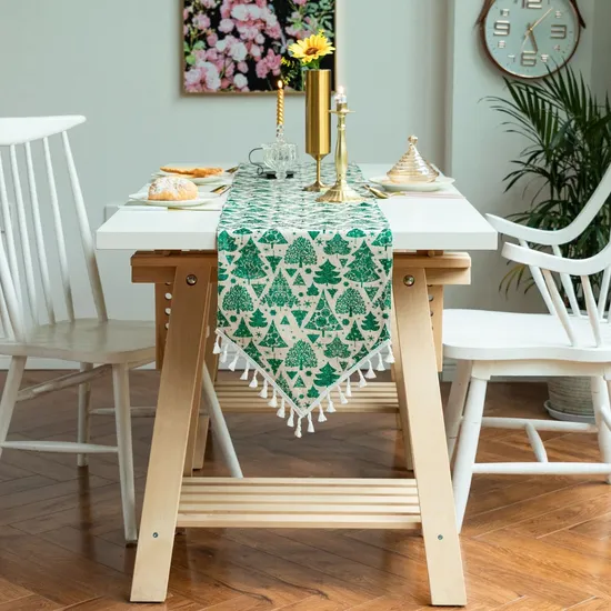 New Style Gilded Scarf Christmas Tassel Tablecloth Cotton Linen tablerunner Product Description Product Description
