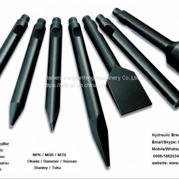 We(Xiamen Yonglianfeng Machimery Co.,Ltd) are manufacturer of Hydraulic breakers/hammers and Replacement spare parts for hydraulic hammers of Soosan,Hanwoo,NPK,Toyo,Furukawa,montabert,rammer,atlas copco,MSB etc., the Hydraulic breaker parts We have are: front head, back head,cylinder,chisel tool, seal kits,piston, diaphragm, thrust bush,ring bush,front cover,rod pin/chisel pin,stop pin,accumulator, through bolt,side bolt, bracket, upper cushion,lower cushion,damper etc.