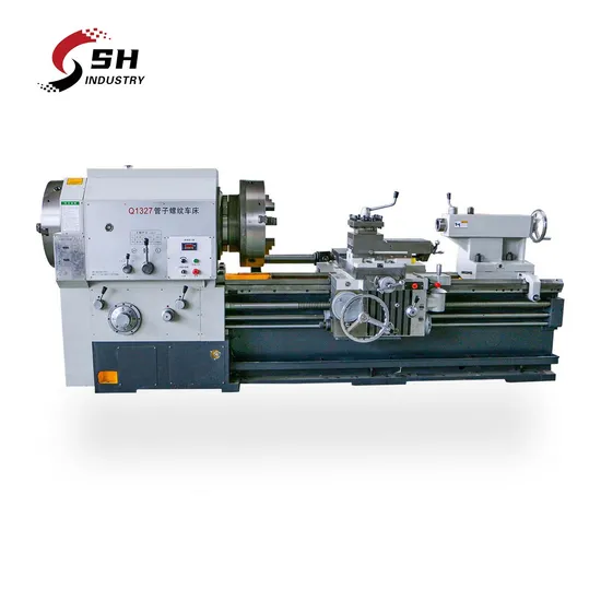 Q13 series pipe threading lathe machine is mainly used for turning the internal and external threads including metric and inch thread,as well as having all the common functions of normal engine lathe such as processing the inner bore and end face of shafts and disks,this machinery is equipped with taper guide bar device which enables this series to process taper thread.