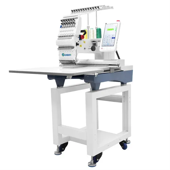 Product Description Specification MODEL: 1201 Single Head 12 Needles Embroidery Machine 1.Suitable for flat embroidery, cap embroidery and finished garments embroidery, T-shirt embroidery, logo embroidery etc. 2. Embroidery area: 500*350mm 3. Controller: 10" Touch Screen Dahao A15 System,User-Friendly Interface 4. High speed specialized cap embroidery heads,with double cam,double lever, by motorized jump. 5. Automatic thread trimmer 6. The running speed:100- 1200rpm 7. 280 degree Wide cap frame unit 8. Automatic color change and thread break detection 9. Start, Stop and emergency Stop Button 10.Design Tracing Available 11.One-Step Tracing 12. 10'' touch screen display control pannel, showing real time stitching 13. Memory size: 500 Patterns,200 Million stitches 14. Computer Reads Multiple Design Formats.Such As DST.DSB And More. 15. USB port 16.Networkable And Wi-Fi capable 17. Control system can be updated easily 18. Multi-languages:, Chinese, English, Spanish, Turkish, Russian.. French, Portuguese, Arabic,Thai, Italian,German, Dutch,Polish 19. Electricity: 110V/60Hz or 220V/50Hz Selfadaptable worldwide available 20.Equip With Laser Positioning 21.Woodencase Packing. 22.Machine Size: 1090x750x1530MM Packing Size:850x835x900mm 23.Net Weight:150KG Gross Weight:180KG