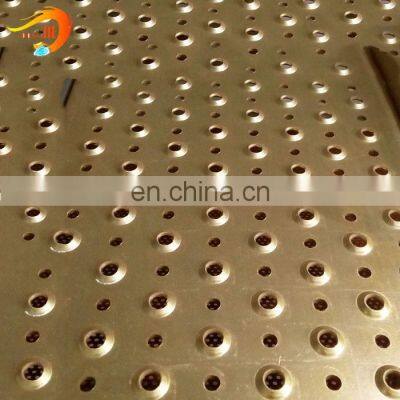 Anti-slip perforated sheet mainly takes metal sheet as raw materials, whose hole edges flip or plate surface bulges through punching equipment to achieve anti-skid purpose. The hole on anti-slip sheet have embossed shape, cruciferous type, round type, crocodile lip shape and tear type, etc.