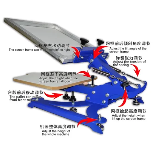 Single Color Screen Printing Press Model:SPM - SPE - 11TY The machine is directly placed on the desktop for use; Mainly used for monochrome screen printing products printing. This machine is especially suitable for making multiple patterns on a screen plate, by moving the screen frame or table plate, printing patterns in different parts of the T-shirt. Features and functions of the machine: