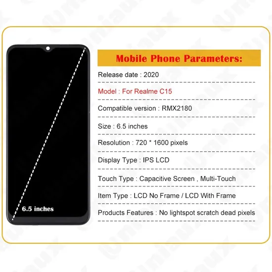 | Item | 6.5" Original For OPPO Realme C15 RMX2180 LCD Display Touch Screen Digitizer Assembly Replacement For Realme C15 LCD With Frame |