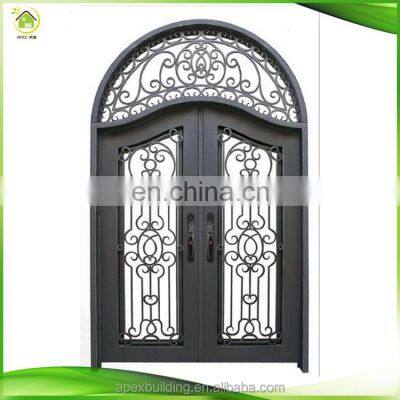 Product Decorative wrought iron main glass door panelsDoor TypeExterior PrehungDoor HandlingLeft/handle-Hand / Outswing or inswingFinish TypePaintedGlass StyleHammeredSurface FinishingPaint or powder coatingPositionGarden, park, hotel, houseAntirust WayGalvanizing(hot dip) or zinc spraying, antirust paintingManufacturer Warraty10 year part warranty, 5 year finish warranty, 1year glass warrantyOur AdvantageOur advantage is that: 1, welcome all customation sizes and styles and colors 2, 100%hand making wrought iron door 3, top quality with low price.Product Information of wholesales decorative wrought iron main glass door panelsDecorative, tempered double-pane glassGlass opens independently of doors for cleaning and ventilationWeather stripping around each door and glass panel2 inch thick door panel; injected foam insulation in jamb and slabsFlush bolt system at top and bottom locks in dormant door of double doorsDoor unit size is measured outside to outside of jamb. Package and DeliveryRelated Products
