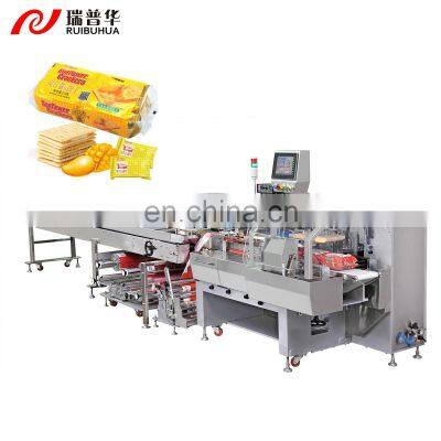 Multipack Bread Cake Biscuit Instant Noodles Cleanging Sponge Soap Pillow Type Horizontal Big Packing Machine Product Description Box-motion type ModelRD-BM-508SRD-BM-708SPacking speed 35-120Bags/min 60-120Bags/min Bag size L100-500, W50-200, H5-100MML180-500, W50-300, H5-120MMFilm WidthMax.500mmMax. 670mmPacking materialsKNY+PE, KNY+CPP, OPP+CPP,PET+CPP,PET+VMCPPDimension L:4000 X W:1139 X H:1680MML:4300 X W:1250 X H:1700MMTotal power 3.5kwTotal weight 1400kgs Rotary cutter typeModelZP-500SGPackaging speed(bag/minute)35-300bag/minPacking sizeL60-Infinite W30-150mm H5-50mmMaximum width of film(mm)<400mmThickness of film(mm)0.03mm-0.05mmTotal power220V,50/60HZ,6.3KWOverall size(mm)(L)4000*(W)960*(H)1600mmWeight550kgPackage4.0CBM,2CASESOverall size (mm)OPP/CPP, PT/PE, KOP/CPP, ALU-FOIL etc. Product advantages1.Reduce mechanical parts, reduce noise, easy maintenance.2.Cantilever frame design fuselage is strong and durable.3.The conveyor is equipped with a width adjustment handwheel, which is convenient and quick to adjust.4.Provide SUS304 anti-rust and waterproof version, which meets high food grade requirements.5.Full-face safety cover, equipped with safety protection switch (warning shutdown), to avoid accidental operation.6.Realize your ideal of a fully automated packaging line, and provide professional planning and design services such as automatic alignment, automatic feeding, and product accumulation.7.Equipped with automatic film splicing device to reduce wasted time for film changing and improve productivity. Main Features1. 5 Servo control: equipped with 5 servo motors to precisely control the movements of each part. Responsive and easy to use.2. Reciprocating cutter make sure 100% cut-off , the cutter is not easy to wear, and more convenient to install and clean than the rotary knife.3. Diverse packaging: suitable for a variety of packaging style, a set of equipment can be capable of packaging products of different sizes.4.10.4-inch touch panel, humanized operation interface, packaging setting parameter input, error (abnormal) warning, packaging statistics can all be displayed on the man-machine interface.5.100 Recipes: Able to save up-to 100 sets of packaging products input, storage, modification, management.6.Miscut protection: prevent miscuts from happening and avoid product waste caused by miscuts.7.No material standby: prevent the occurrence of empty packages and save the cost of packaging materials.8.Troubleshooting: Clearly mark the location of the alarm, which can be quickly eliminated to save time and consumption.9.Stable and noise-free: precise design and precise production make the machine no noise during operation.10.Durable structure: The components are precisely designed to prevent wear and are not easily damaged after long-term use.11.Ensure sanitation: Any parts that have direct contact with the packaged items are made of SUS304 food grade stainless steel. Optional configuration:*Adjustable bag former *No material, machine stop *Automatic film splicing *Gusseted bag device*Adjustable conveyor *Miscut protection *Receiving device *Labeling device*Automatic alignment *Magic eye tracking *Nitrogen device *Punch device*Stainless steel body *Electric eye tracking *Date code printing Company Honor