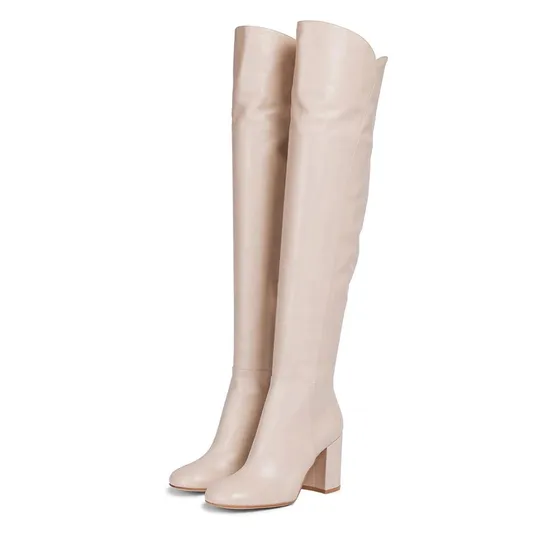 Products Description Elegant Nude PU Long Boots For Women 9cm Block Chunky Heel Round Toe Plus Size Over The Knee Boots Ladies Shoes