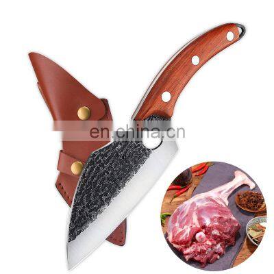 Products DescriptionItem NumberHF2027Product NameHot selling black hammer meat knife slicing knife with rose wood handleMOQ1PCFunctionboning knife,fish knife,butcher knifeTypekitchen knife,comping knifeBlade Material420J2 S/SBlade thickness4MMBlade TreatmentHammer + black finishHandle Materialrose woodTotal Length28CMBlade Length14.8CMWidth6CMWeight306GHardnessHR59Place of OriginChinaBrand NamecustomizedPackagingcolor box, gift box etcDelivery time15-20dayProduct ImagesProduction ProcessCompany ProfileOur CertiflcatesPackaging OptionsPacking&shippingQ: Are you the manufacturer or trading company? A: We are manufacturer as well as trading company Q: Can your factory accept customized product?A: You customized order is warmly welcomed. We provide customized service in packaging and product as your requests.Q: How can I get a sample? A: If you need a sample, please feel free to contact us, and the sample usually will be available within 3-7 days.Q: How long is your lead time? A: Usually our lead time is 45 days. But for some ready-made products, we can supply from stock.Q: How can we guarantee quality? A: Always a pre-production sample before mass production; Always final Inspection before shipment.Q: Do you have any certification for the products? A: Yes, we have LFGB,CE,BSCI certificates to make sure your import will be successful.