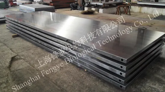 The heating plate and cooling plate can be made of low carbon alloy steel (Chinese Grade Q355B or Q235B). The strength of the material is good and by our precision processing, we can guarantee the roughness and parallel. As the heating plate works in high pressure, the drilling and pressure testing is the most important process during manufacturing. We always do the premium quality to our customers.