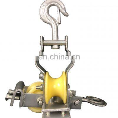 Product DescriptionTelecommunication Cable Laying Construction Aerial Cable Pulling Rollers Cable PulleyAerial Cable Pulling Rollers Cable Pulley is widely used in engineering, electric power, petroleum,mining,coal,metallurgy,paper making, construction,port,cable and other industries,cable tunnes show exhibition place or on the ground put the extension cable and wire refease, the product is divided into single-round and three,non-fragile cables.they run maintenance-free on dirt and dust-proof bearings, the robust steel frames are completely galvanized and guarantee a long working life even under extreme conditions .Corner canble rollers:guide the cable surely round each curve and cable friction is minimized. even heavy duty cables runlightly off the rollers. the required winching power is considerably reduced and winching wires are no longer abraded as much. Our company has different kinds of cable roller,Nylong cable roller,Aluminium cable rollers, single nylon sheave pulley and so on.SpecificationHigh Performance cable pulley straight cable roller specification Model Dia/Wid(mm)Rate Load (KN)Weight(kg)wheel Material mmLYC-0180/5051.9AlumLYC-02120/3052.1AlumLYC-03160/40102.5AlumLYC-04120/58203.5AlumLYC-0580/5051.4Nylon LYC-06120/3051.6NylonLYC-07160/40102NylonDetailed ImagesHigh Performance cable pulley straight cable roller picture details