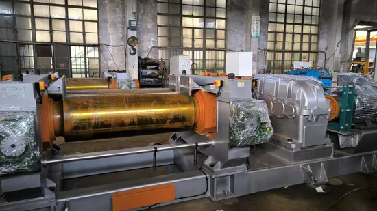 Configuration of Hardened Teeth Gearbox Bearing Bush Auto Lubrication Motorized Gap Adjustment Electric Hydraulic Brake Device stock blender Rubber compoud mixing mill
