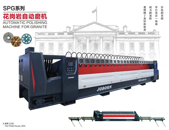 JOBORN SPG/SPM Plus Automatic Polishing Machine For Granite/Marble. SPM plus series marble automatic grinding machine is a stone grinding and polishing equipment with advanced level at home and abroad, which is developed and manufactured on the basis of absorbing the advantages of similar products at home and abroad. The industrial design of the whole machine guides the industry trend. The grinding and polishing efficiency and quality are at the leading level among similar products at home and abroad. It works stably and reliably. It is the preferred equipment for automatic grinding and polishing of stones.