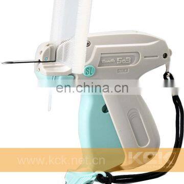 KCK Standard tagging gun in Green color is used for tagging clothing at a fund raiser flea market. Gun features optimized spring tension and a short trigger stroke for a smooth feel.