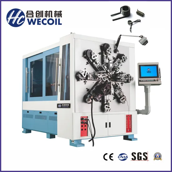 5. All the workers, Assembly Team, Electrical Team, Spring Testing Team, Sales team, even the Packaging Personnel are with at least 7 years experience in Spring Machinery Industry which guarantee our machine with high performance. HCT-1245WZ--Machine Introduction: 1.HCT-1245WZ 12 axes CNC Versatile Spring Rotating Forming Machine adopts TaiWan CNC control system and Japan Servo Motors to control the feeding system and Cam system synchronously. It is suitable for making various Compression spring, Extension spring, Single (double) torsion spring, Tower shaped compression spring, Flat wire spring, Magazine spring, Spiral spring and any kind wire forms.