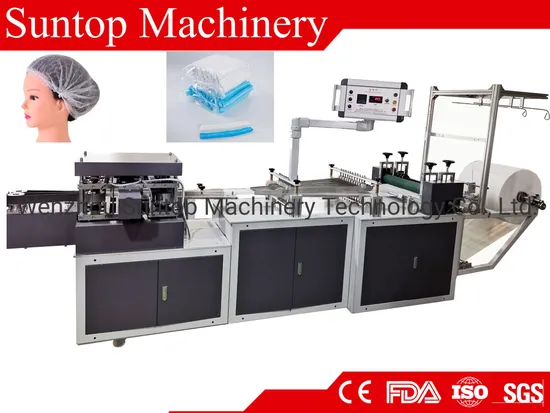 Bouffant Cap Machine Medical Nursing Cap PE Head Cover Non-Woven PP Mop Cap Strip Shower Cap Disposable Cap Making Machine. It adopts ultrasonic heat sealing method, frequency conversion speed regulation, and produces non-woven materials and plastic film materials. The disposable dust-proof non-woven strip caps are integrated into the finished product from feeding to finished products. You just feeding the material (Non-woven or PE Plastic film and rubber band ),then you will get final product.