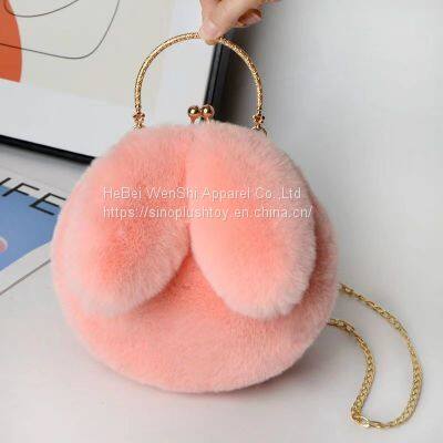 010Plush Bag Female Oblique Crossbody Korean Version Lovely chain women handbag fur Plush shoulder Bag Rabbit Ear Clip Mouth Bag