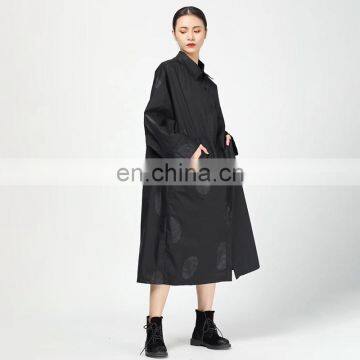 TWOTWINSTYLE Vintage Print Lapel Flare Sleeve Pockets Loose Oversize Midi Female Dresses