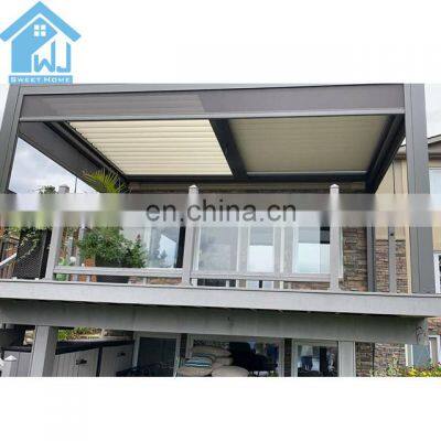 Product DescriptionOur this aluminum pergola is 100% water proof with internal gutter .We can do electric and manual control.The post size of our this aluminum pergola is 150x150x3mm which is very strong to hold the top louver roof system .We can custom any sizes for the aluminum pergola and you can choose motorized and manual control way.As we have our own color cutsomized work shop , we can custom any colors base on RAL color card .For the other accessories like side curtains/blind , LED lights ,heater ,wind/rain sensor , fan and so on , we cal also provide. And we can provide very detailed installation videos, so don't worry about the installation .Welcome to contact and inquiry .Product Name:Aluminium Garden PergolaFramework Main Beam:Extruded from 6063 Solid and Robust Aluminum ConstructionRianfall intensity :0.04-0.05L/S/M2Snow Load:UP to 120kg/m2Win Resistance:UP to 120km/h for closed bladesWidth Range:2.5m - 13.5mElectric Motor's Voltage:110V Or 230VRemote Control:1 Channel or 5 ChannelGutter:Complete with Gutter and Rain Spout for Inbuilt PVC DownpipeLouvres Blade Size:150mm /200mm/ 265mm Aerofoil Type Available, Waterproof Eeffictive DesignPivot Bolt:Highly Durable Aluminum with PP Blade End CapsOther Componentries:Heavy-duty internal fittings, Plastic bush, SS Grade Stainless Steel ScrewsTypical Finishes:Durable Powdercoated for Exterior ApplicationColors Options:We have our own color customized factory , we can custom any colors for youMotor Certification:TUV,CE,SGSHow the water come out : Our aluminum pergola with internal gutter system , the rain/water will come out from the bottom of post,like below picture .ProjectFactory and Package5 Stars review :FAQQ1:How to guarantee the quality of the products?We have our own QC team to control the products quality for all our clients'orders before loading.Q2:How long does it take to install a louvres roof /pergola?It depends on te skills,help and tools, usual 2-3 workers will finish the installation 50m 2 in one day.Q3:It is the louvre roof /pergola rain proof?Yes,the normal weather cnditions,even heavily rain,the roof /pergola will not let in rain.Q4:How does the rain sensor work?The control system normally programmed to close the louvres when rain is detected.Q5:Are louvres roof/pergola energy efficient?The adjustable louvres blade help to reduce heating and controlling the amountof direct sunlight.Q6:Can the louvres roof/pergola used next to the sea?All accessories in aluminium alloy,stainless steel and brass to avoid any rust and corrosion.Q7:How we do business?Take care of your prducts and serve your needs.Contact us by E-mail or by phone. Other Main Products