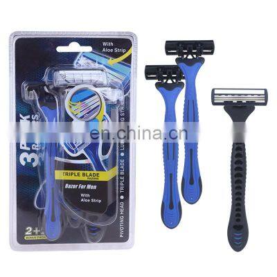 3PCS/Pack Private Logo Available Disposable Men Razor Triple Blades Stainless Steel Shaving Razor For Male With Lubricant KL3-06