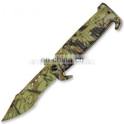 9 Inch aluminum handle stainless steel folding Custom Camping Knife specification: * Different handle colors are available, such as: Blue, Red, Black, Green,Orange, etc.* You can also choose 440 or other stainless steel to make the knife blade* The knife blade can be black coated, titanium coated, bead blast finish or satin finish.* We can use other materials to make the knife handle as you request, such as G10,Micarta, Resin, Aluminum, Stainless steel, Wood, Plastic, Animal Horn or Animal Bone, etc. Quality description: Locking MechanismLinerlock folding knifeHandle length122mmHandle material aluminumBlade length105mmBlade finishSilver coatedBlade material175 or 440 stainess steelweight172.8GComes withPocket clipRemarksDifferent handle color is available Photo Show: Company Introduce: Yangjiang Homeful Industry & Trade Co., Ltd. was founded in 1998. Our company is manufacturer and sale of all kinds of outdoor knife, camping knife, hunting knife,pocket knife,knife set ,dive knife,survial knife,combat knife,sporting knife,rescue knife,canoe knife,toothpick knife,hunting knife,outdoor knife, fixed blade knife, swiss knife ,utility knife,multi tool,multi tool pliers ,axe,multi hammer ect.Our strengths: competitive price + stable quality + flexible service + quick supply ability+ OEM available Payment team: 1.MOQ: 1000PCS 2.Lead time: about 35 days after order confirmed. Payment terms: 30% deposit, remain 70% against fax copy of Bill of Lading and other shipping documents. 3.Sample time: 3 days without logo, 5 days with logo. warning the knives in this tool are extremely sharp,and should be used with the utmost care and caution Contact us: *If you have any question about our products or your shipping status of your order,please feel free to contact us. *We will answer your message within 24 hours. Website: Add.:Yuyuan 5 Road,Yitong Industrail Zone,Yagnjiang ,Guangdong,China. Welcome to visit our company!!