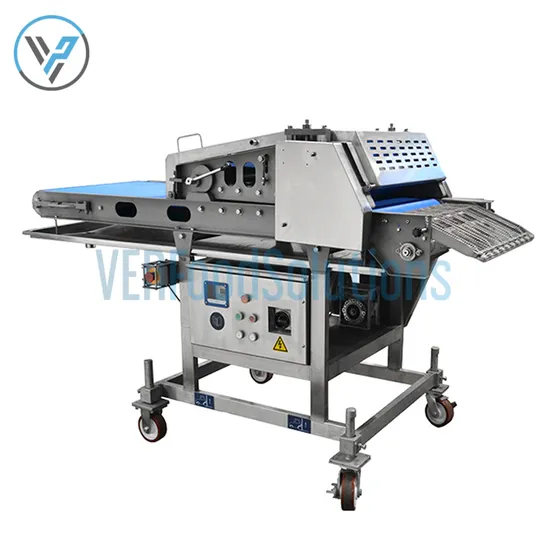 VER Meat flattener is made to be flattened the products pass through the top and bottom belt. This meat flattening method puts less pressure on the meat by massaging it over a shorter period of time than other flattening equipment. This results in high quality bite, texture and taste. Usually It can be used for beef, veal, pork and poultry. Manufactured in stainless steel and can be integrate with crumbing line and automated battering. The thickness is also adjustable from 3-30mm.