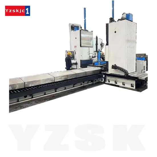 This equipment is a workbench mobile structure, mainly composed of bed base, mobile workbench, left and right moving column, CNC horizontal boring and milling power head, cooling device, hydraulic system, centralized lubrication system, chip removal device, electrical system, CNC system, disc tool magazine, etc.