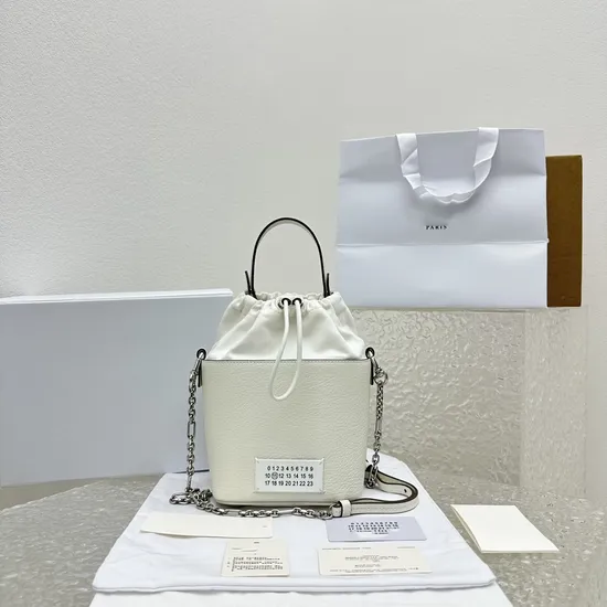 Designer replica of Brand L Women's White Bucket Bag Drawstring Closure Leather Adjustable Strap Single Shoulder Handbag Crossbody Bag