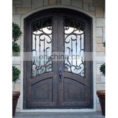 | Arch round top residential cheap steel double wrought iron entry doors