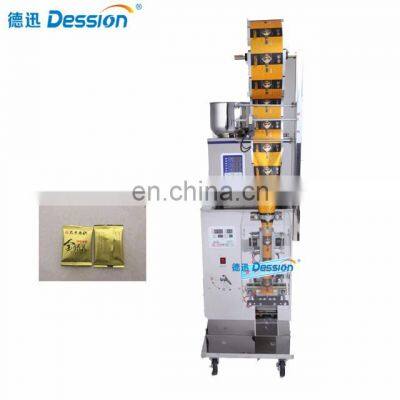 ApplicationProduct DescriptionIntroductionThis product has been excellent engineers carefully study design, the use of microcomputer control of optical technology, high accuracy, fast, good quality, solve the traditional tea packaging tedious process. An automatic dosers several labor equivalent amount of tea production and tea shop is a good helper. ItemSmall vertical pouch packing machineDegree of automationFull AutomaticWeighing Difference0.1~1.5gUsed for tea bag60*70mm cusromize the with 60mmThe flim thickness: 0.5mm-0.8mm Gross Weight90kgBag-Making Width & Length(W)8CM Coil on 16CM ; (L) 0-9CM(adjustable) customizable 12CMPower220V, 200W, 50/60HZMachine SizeL)430 * W)510 * H)1400mmMachine PackingPlywood caseDetailed ImagesVibrating plate for spreading the productsVibrating plate for spreading the productsBag forming shoulder for different size of bag width Electric eye controller with heat balance different packing materialsVertical sealingEnd sealingCertification & FairOur ServicePre-Sales Service* Inquiry and consulting support. * Sample testing support. * View our Factory.After-Sales Service* One year guranty for machine, two years guaranty for electrical part* Engineers available for oversea service.Packing & DeliveryMain Engine PackagingSize (L) 610* (W)490 * (H)1080 mmWeight130kgPackaging DetailsStandard export plywood caseFactory ViewRelated ProductsBread Powder Packing Machine93.2% Response RatePalm Oil Packing Machine96.8% Response RateLiquid Packing Machine92.5% Response RateChina Small vertical pouch packing machine cheap price for sell