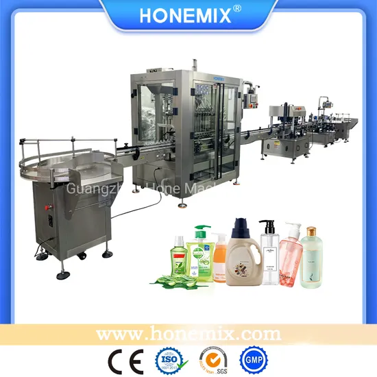 Hone China Manufacturer Liner Automatic Servo Piston Liquid/Paste/Cream/Shampoo/Soap Bottle Filling and Capping Machine Production Line with TurntableApplication Scope: Liquid soap, shampoo, hair conditioner, liquid detergent, hand wash, shower gel, hand sanitizer, body lotion etc.