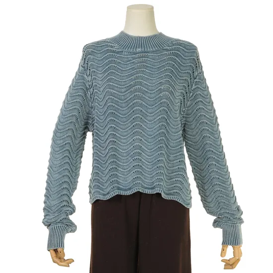 Classic Blue Vintage Wash Women′s Sweater for Casual Style