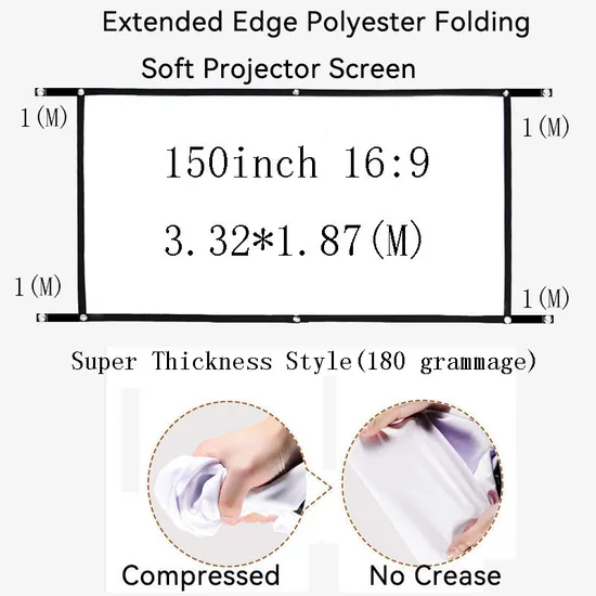 Thinyou Extended Edge Super Thickness Style Portable 150inch 16:9 Soft Foldable Outdoor Polyester Projector Screen