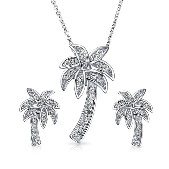Fashion Water Drop 925 Silver Halo Necklace Earrings Jewelry Set 1.Manufacture/Factory