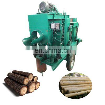 Inside of the machine, there are small toothed knives on the sticks, which can be peeled the skin of tree by rotating back and forth and friction between the trees.