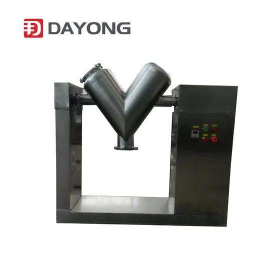 * Machine MaterialV shape mixer machine is made of high quality 304 stainless steel, 316 stainless steel can be selected according to customer needs. Comply with GMP requirements, with CE certification.Double feed port, feed more convenient, mix more quickly.