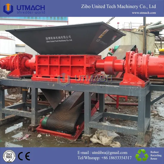 D series Double shaft shredder from United Tech Machinery is designed for a wide array of applications and industries, suitable for shredding solid material such as E-waste, metal, wood, plastic, scrap tires, packaging barrel. Pallets, etc. And particularly well suited to the size reduction of bulky or voluminous materials which could include contamination such as metals or stones. Depending on input material and the following process the shredded material can be used directly or go into the next setp of size reduction. It can efficient to increase the bulk density and decrease the transportation cost. It si widely used in industry waste recycling, medical recycling, electronic recycling, pallet recycling, municipal solid waste recycling, plastic recycling, tire recycling, paper making industry, etc.