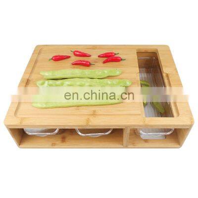 Large Organic Bamboo Cutting Board For Kitchen With 3 Acrylic Trays