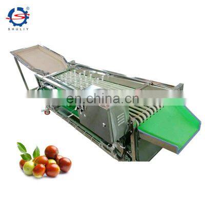 Commercial Fruit Grading MachineProduct DescriptionThe conveyor belt of the fruit sorting machine is made of silicone material, which is strong and wear-resistant. It is suitable for the classification of various round and oval fruits and vegetables. The fruits and vegetables can be divided into 4-7 grades according to the diameter of the fruits and vegetables. The sorting machine with a good sorting effect, large grading volume. ModelVoltagePowerDimensionWeightSL-9220V1.5KW2100*600*800MM150KGSL-17380V0.75KW3200*1200*800MM 1. The sorting machine is suitable for those fruits that are sorted according to the size of the fruit shape.2. Through the operation of the silicone belt, the fruit falls into the outlet at the appropriate hole.3. Equipped with a feeding tray, you can choose to load on one side of the machine or on the top of the machine, you can pick out bad fruits, and one machine can be used for multiple purposes.4. Using copper wire motor, 220v/380v can be customized.5. The silicone material is used to directly contact the fruit, it is round and smooth, and does not damage the fruit.6. Made of stainless steel, the body is not easy to deform, and it meets the hygienic standards of food processing equipment.7. This equipment is suitable for sorting small fruits and vegetables such as cherry tomatoes, gray dates, golden jujube, hawthorn, kumquat, lychee, longan, and other small fruits and vegetables. Our ServicePre-sales services* any concerns of our machine by email/phone will be replied to ASAP within 24 hours* according to the customers’ requirements and circumstances to make the best design * cost/benefit analysis* to support factory layoutIn the sale of services* We are in charge of installing, debugging, and training* technical guidance of frequently asked questionsAfter-sales service* one year guarantee for the whole machine except for quick-wear part* 24 hours technical support by email/phone* calling, network, or door-to-door service* use-friendly English software, user manual, and detailed Videos/CD