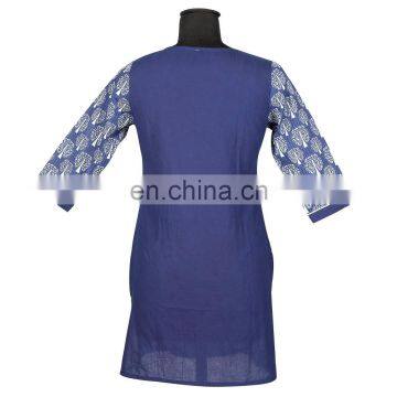 BLUE PRINTED WITH PLAIN DYED KURTIS DESIGN