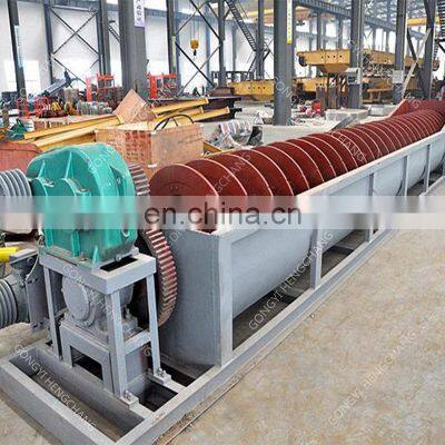 Product DescriptionHigh capacity mini gold spiral washer equipment screw rock river stone silica sand washing machine with good priceSpiral stone washing machine is suitable for construction sites, sand and gravel plants, hydropower stations, concrete dam sites,post and telecommunications pole factories. The sand washing machine is arranged at an inclination of 15°, and the lower part of the water tank is surrounded by three side slabs to form a sedimentation tank. The spiral head is not inserted into the sedimentation tank, and the spiral is continuously rotated by the electric motor through the reducer, and the washing water is fed from the perforated plate at the bottom of the sedimentation tank. The device has three functions of cleaning, dehydration and classification. We have two types of sand washing machine:Condition:NewType:Spiral stone washing machineProduction Capacity:According to modelsVoltage:380VDimension(L*W*H):Refer to specificationWeight:0.7~35tCertification:CE,ISOWarranty:1 YearAfter-sales Service Provided:Free spare parts, Field installation, commissioning and training, Engineers available to service machinery overseas.Spiral diameter:300~3000mmTrough length:3000~14300mmspiral sand washing plant:Advanced and reasonableOperation:Simple,sand production lineMaintenance:EasyRunning costs:LowMarket:Africa, Asia,etcRelated Products:Sand washer is widely used for the washing of the material sand quarry, mining, building materials,transportation, chemical industry, water conservancy and hydropower, concrete mixing station,etc.According to different kind of washing type, we have :Spiral sand washing machine: Wheel type sand washing machine:Product DetailsReinforced Tank And BaseStrong Stability, long service lifeSeamless steel tube spindleStrong rigidity, strong torsion, no deformation.High Quality Transmission SystemCopper core motor, high quality reducer, stainless steel bearing, stable and reliable running.Thickened Wear- Resistant BladeWear resistance iron material, removable design, easy to replaceProducts ApplicationRange of application:Quarry, Building material, Transportation, Energy, Chemistry, etc.Applied Material:Quartz stone, River pebbles, Calcite, Dolomite, Granite, Basalt, Iron ore, Limestone, Diabase, etc.Working PrincipleThe stone washer adopts inclination of 15°,under the water tub, three weir plates form the sediment pool, the screw head is immersed in this pool, the screw is driven by electric motor through reducer rotating continuously, the fresh water is feeding from porous plate at bottom of sediment pool. The sand washing machine is a kind of sand washing machine, appliance by water fit with the sand maker. The sand washer can wash away micro amount of stone powder and impurity from the mixed sand made by the sand maker to improve the quality of the sand. The sand washer impelled by generator and redactor drives the impeller to rotate in circles continuously in the water tank and then to make the sandstones and slag particles mixed, inverted and washed in the tank and discharged after dehydration of the materials in the impeller.ModelSpiral diameter(mm)Feed size(mm)Water consumption(m3/h)Capacity(t/h)Power(kw)Dimension(mm)Weight(T)XL-508508<106~60205.58000*2343*14302.67XL-610610<106~6340-507.58000*2050*14003.80XL-762762<109~6350-75118545*2650*38625.23XL-915915<1010-80100118500*2810*36006.272XL-915915<1020~1602002*118420*3765*396011.11XL-11151115<1020~1501751510970*3945*472010.182X11151115<1040~303502×1510970*5250*472017.94Company ProfileHengchang is a company integrating industry and trade. Its main business is the sale of jaw crushers, drying equipment, and mineral processing equipment. We have our own factory, professional production team, quality control team, 10 years of export experience and many loyal customers. We have experience in exporting products to Southeast Asia, Australia, Europe, South America and Africa, and have gained a good reputation. At the same time, our excellent product quality and best service have won the trust of customers all over the world. Many of our products have obtained CE certification, and most of our partner factories have ISO9001 and IEC certifications. Some have also obtained etification. We believe that our company is your good choice, because we respond quickly to your enquiry, and we will reply you within 4 hours. Our experienced English-speaking trading staff will listen to your requirements and choose the right products for your market according to your requirements.The Customer SiteWe have provided the log washer for many customers in Sudan,Mali, Mozambique, Nigeria, Suriname, Ghana, South Africa,Uganda, Zambia, Tanzania, Angola, Canada, Austrialia, Chile, Peru,ect. For Alluvail gold washing plant, coltan ore mining plant,diamond washing plant, Iron ore washing plant,ect.Customer Visit & Our ServiceBefore-sale services:We guide customers to choose the best and applicable device; provide the advanced, energy-saving and practical technological processes, as well as we are responsible for the planning and design of the site.Sale services: Products must be inspected strictly before being sold; customers are invited to simulate and test machine on-the-spot and raise objections; in accordance with the agreements stipulated in the contract, we will arrange delivery.After-sale services: Our Company will send professional engineers to guide device installation, debug and train operators until customers are fully satisfied. Moreover, we will design and produce machines according to the special requirements of customers. Solemn Promise: The quality guarantee period of machines is one year except the wearing partsTips:The prices in the web only to be reference,according to raw material's price fluctuations; Specific price is subject to thenegotiation.Product & PackagingPackaging Details:Normally the machines are taken apart before delivery and are packed by suitable packing ways, the packing ways are as below: Nude p