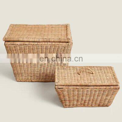 Product DescriptionHot Sale Rattan Hamper WIth Lid, Natural chest Cabinet Storage Basket Cheap Wholesale High Quality VietnamWith a rustic, natural, and environment-friendly beauty. Meticulous knitting line, providing beautiful durability over time. Easy to clean, save time. Shows the beauty of craftsmanship and traditional techniques.They are not created by the mass production of machines. This rattan basket is a must for storing little trinkets, textiles, and crafting supplies.. Products are crafted from Vietnamese artisans with skillful hands. Woven from natural plants, stylish and beautiful, the exquisite weaving process is not only a decorative storage, but also a home fashion artwork. It will give you a clean and beautiful living space while creating a high-quality living space. It is absorbent and breathable, non-toxic and healthy..TypeStorage BasketsUseNeatening/StorageMaterialrattanFeatureSustainable, StockedFunctional designMultifunction, FlexibleDimensional tolerance<±1mmWeight tolerance<±1%(含)Related ProductRecommended By SellerMain MaterialPacking & DeliveryOur Selling PointsFAQCompany Profile