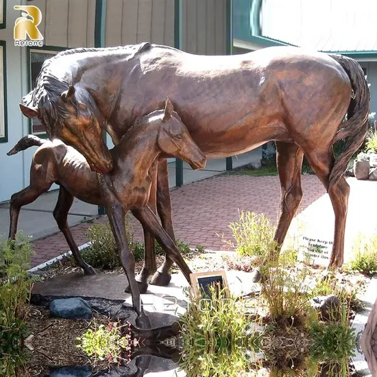 Outdoor Life Size Mare and Foal Statue Garden Decoration Bronze Animals Mother Horse with Pony Horse Sculpture