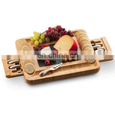 Products DescriptionCustom High Quality Square Wooden Bamboo Cutting Cheese Board Set Tray With Drawer 6 Knife Holder SetsColorBambooMaterial100% Natural BambooSize400*330*50mmPackingBrown box and shrinkPortXiaMen,FuZhouPaymentL/C,T/T,Alibaba trade assurance,Western UnionDescription1.Made of durable natural bamboo known to be environmentally friendly, stronger and more beautiful than regular wood.2.Ideal for serving breakfast, dinner, wine, or just anything else, or use for an elegant decoration display.3.Elegant sides with wide handles for easy grip. Surrounding tray lips prevent items from falling over.4.Hand wash with mild soap warm water, for extended life of tray use bamboo oil occasionally.In-store activitiesPelative ProductsFactory introductionProduct packagingFAQ