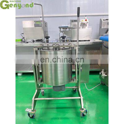 Product DescriptionChocolate melangerMelanger is designed for artisanal food manufacturers and lab experiments.Refining maximizes the nutritional value, releasing the aroma of cocoa, as well as lengthens the shelf life of the product. It can grind cocoa nibs,make nut paste, pralines, spreads,ice base,etc.The Melanger is with granite stones which can grind cocoa particles to ≤20 μm with silky and smoothy taste. This is highly efficient and energy saving, it is equipped with a continuous operating motor without the risk of overheating and no need for external cooling fans.The Melanger is light enough to carry easily, and it is is plug and play with a convenient tilt mechanism which makes cleaning and emptying quick and simple. The modular design makes it easy to assemble and disassemble, and the setup requires only basic expertise and simple tools.Melanger is designed for artisanal food manufacturers and lab experiments.Refining maximizes the nutritional value, releasing the aroma of cocoa, as well as lengthens the shelf life of the product. It can grind cocoa nibs,make nut paste, pralines, spreads,ice cream base,etc.The Melanger is light enough to carry easily, and it is is plug and play with a convenient tilt mechanism which makes cleaning and emptying quick and simple. The modular design makes it easy to assemble and disassemble, and the setup requires only basic expertise and simple tools.Details ImagesSpecificationParameters:We have 3 capacities to choose from, 25L/60L/100L.itemvalueConditionNewApplicable IndustriesFood & Beverage FactoryShowroom LocationNoneVideo outgoing-inspectionProvidedMachinery Test ReportProvidedMarketing TypeNew Product 2023Warranty of core components1 YearCore ComponentsEngine, GearBrand NameGenyondPlace of OriginChinaShanghaiVoltage220V/380V/CustomizablePower2.5KWDimension(L*W*H)890*840*1180mmWeight200KGWarranty12 monthsApplication fieldsSnack food factory, chocolate factoryRaw materialNuts, cocoa beansOutput product nameLiquid chocolateKey Selling PointsLong Service LifeProduct nameCocoa stone grinderApplicationGrinding Chocolate massMaterialSUS304Capacity20L/60L/100LMachine typeSingle machineWarranty1 YearAfter Warranty ServiceTechnical Online ServicePackageWooden CaseFunctionChocolate FormingSuitable forChocolate Products MakingRecommend ProductsPacking & DeliveryTo better ensure the safety of your goods, professional, environmentally friendly, convenient and efficient packaging services will be provided.Company ProfileZhangjiagang Genyond Machinery Co., Ltd belongs to Genyond machinery industrial group which has 6 factories in China, mainland.Our main products are dairy processing line, vegetable and fruit processing line, filling and packing machine, Pharmaceutical equipment.Fruit and vegetable pharmaceutical processing equipment through Shanghai genyond Technology Limited production, with Germany concise durable and practical design style, uphold Japan sophisticated manufacturing process, combined with our twenty years of industry experience, this paper gathered the food technology, pharmaceutical technology, plant extracting technology expert and mechanical equipment engineer, have been the introduction of mechanical technology of fruits and vegetables the most advanced machining from Germany, Italy, followed soon introduce, much improved, innovative concept of scientific and technological progress, using new technology and new process, the mechanical, to select the best combination with industrial technical data, the equipment layout is more scientific and reasonable, provide all equipment and turnkey project green products for the domestic external number of fruit and vegetable processing, pharmaceutical processing and plant extract processing enterprises, and formed a unique market competitive advantage.The quality of the equipment installation quality and engineering, security and maintenance cost of the whole system, reasonable process flow, compact structure, beautiful appearance, stable operation, low running;comply with GB16798-1997 food machinery safety and health standards, "ACCP" food safety and health management system and "GMP" pharmaceutical health and safety management system and other relevant provisions.The successful development of the project:3-40 tons / belt type juice production line;The processing technology of the carrot juice concentrate, fruit juice, powder technology and production line;Processing technology of the cactus, aloe vera drinks, juice concentrate, powder technology and production line;Processing technology of various beverage, concentrated juice, juice, jam, powder technology and production line;Technology and processing, all kinds of vegetables, vegetable dehydration and drying processing technology production line;Processing technology of the tropical fruit drinks, juice, juice, jam, powder technology and production line;Technology and processing the various wine, vinegar, jam and other processing production line;Processing technology of the various protein beverage, powder technology and complete sets of production line;Process and equipment for processing the various vegetables and plant extraction liquid, oil, concentrated, powder etc.;all kinds of fruits and vegetables crisp, preserved fruit and frying process and equipment of food processing technology etc.;all kinds of pickles processing technology and equipment;all kinds of fruit grading, waxing and polishing equipment;processing a variety of fruits and vegetables, pharmaceutical and extraction of laboratory and scientific research institutions of complete sets of equipment;The corresponding part of the equipment and all kinds of packaging production line;FAQContact us