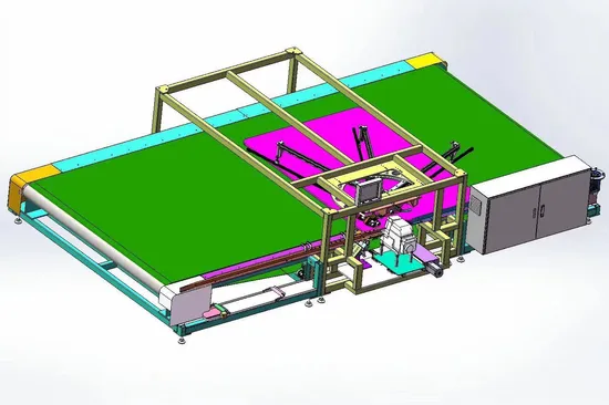 Automatic Carpet hemming machine can automatically finish the edge sewing of right angles of four sides. When the longitudinal edge covering is finished, it is transferred to the horizontal edge covering through manipulator after automatic cutting.